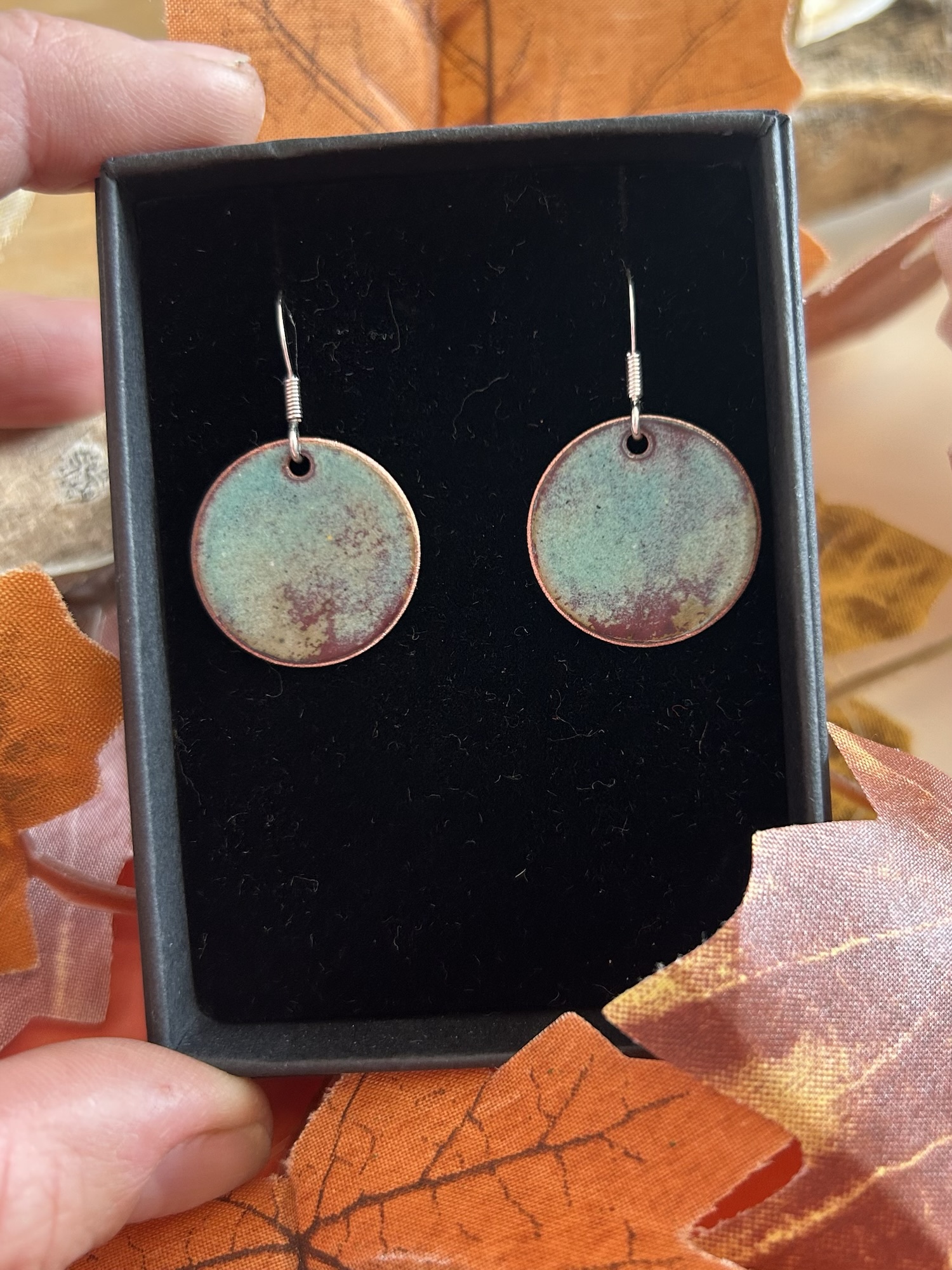 - All pieces are backed with counter enamel so the copper does not touch the skin