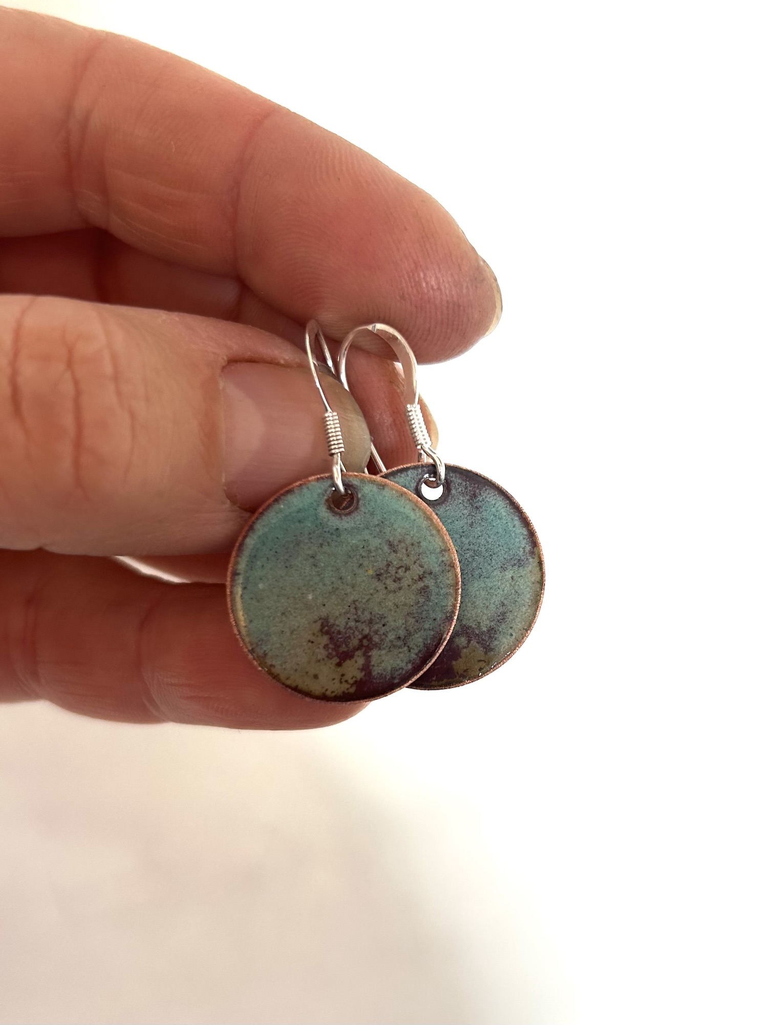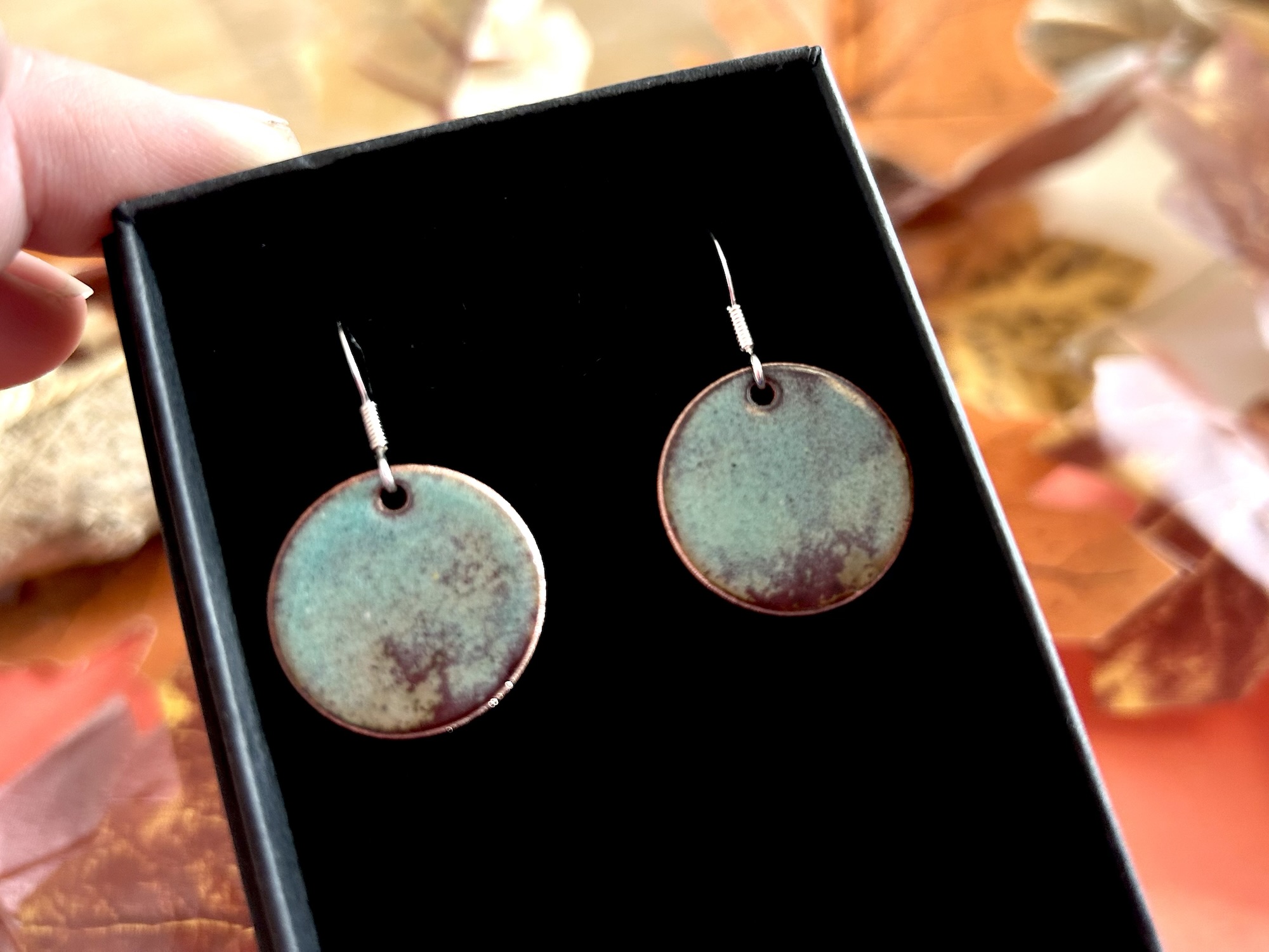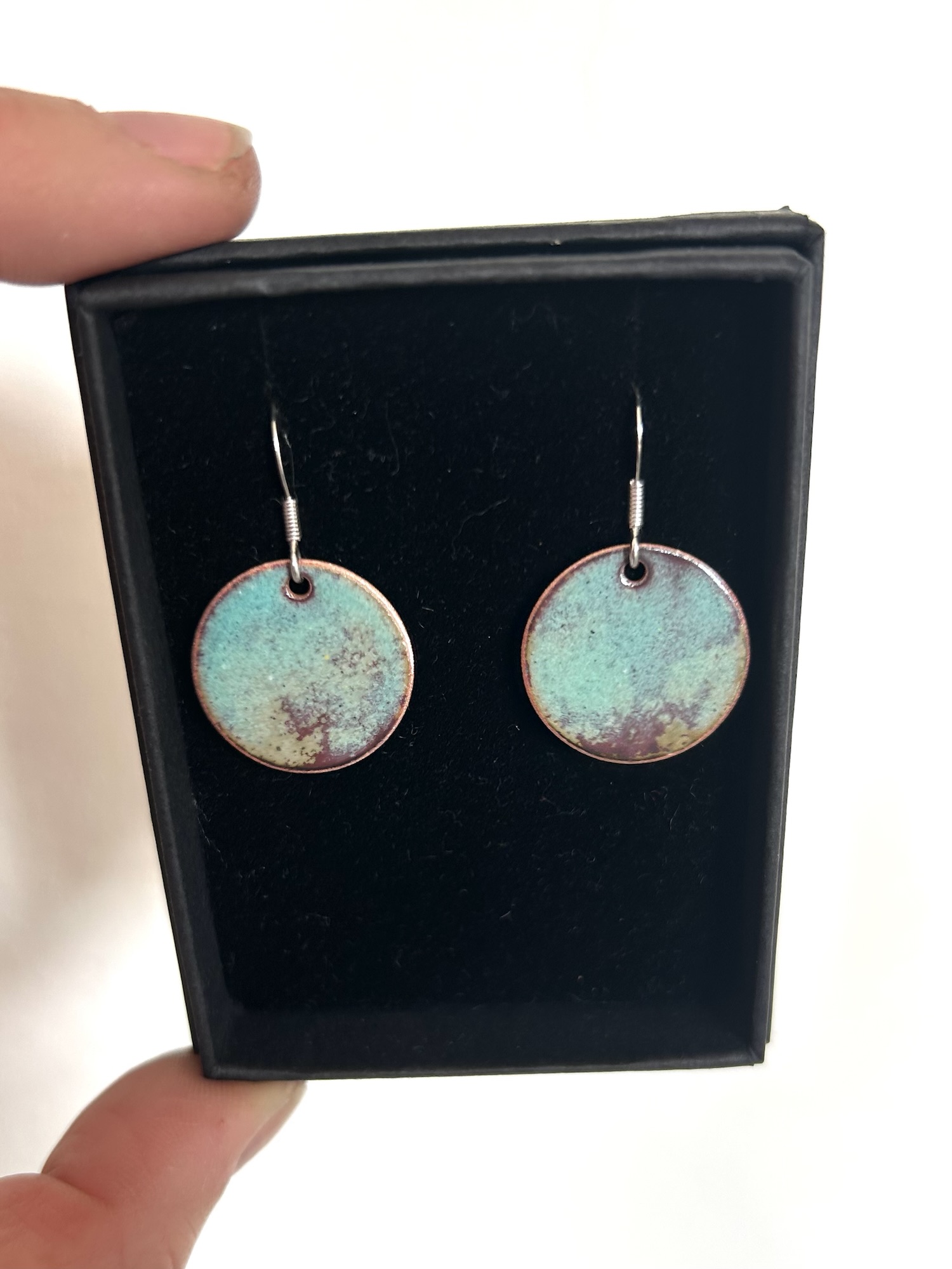 Stunning Autumn moon earrings in a transparent turquoise enamel