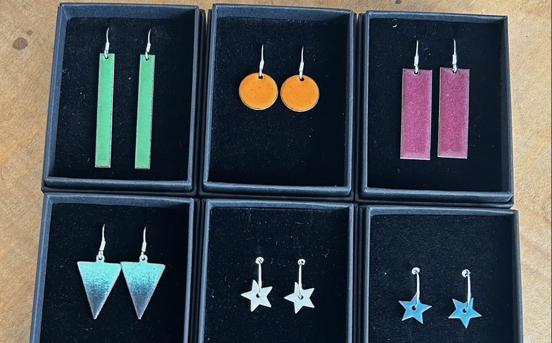 - All pieces are backed with counter enamel so the copper does not touch the skin