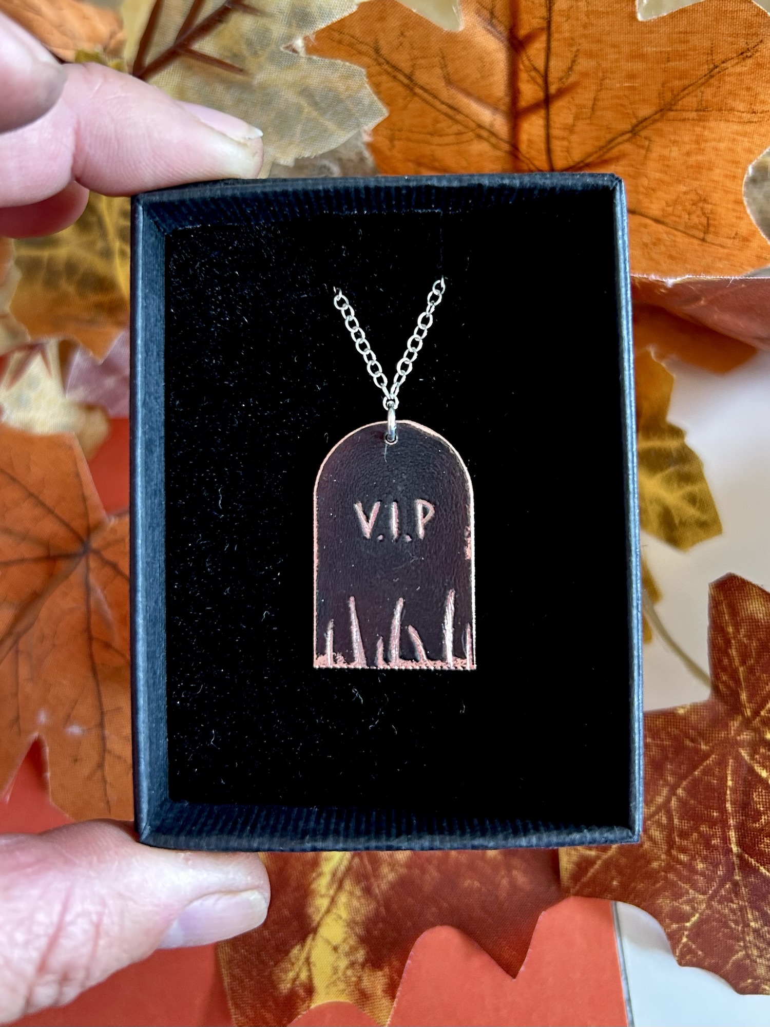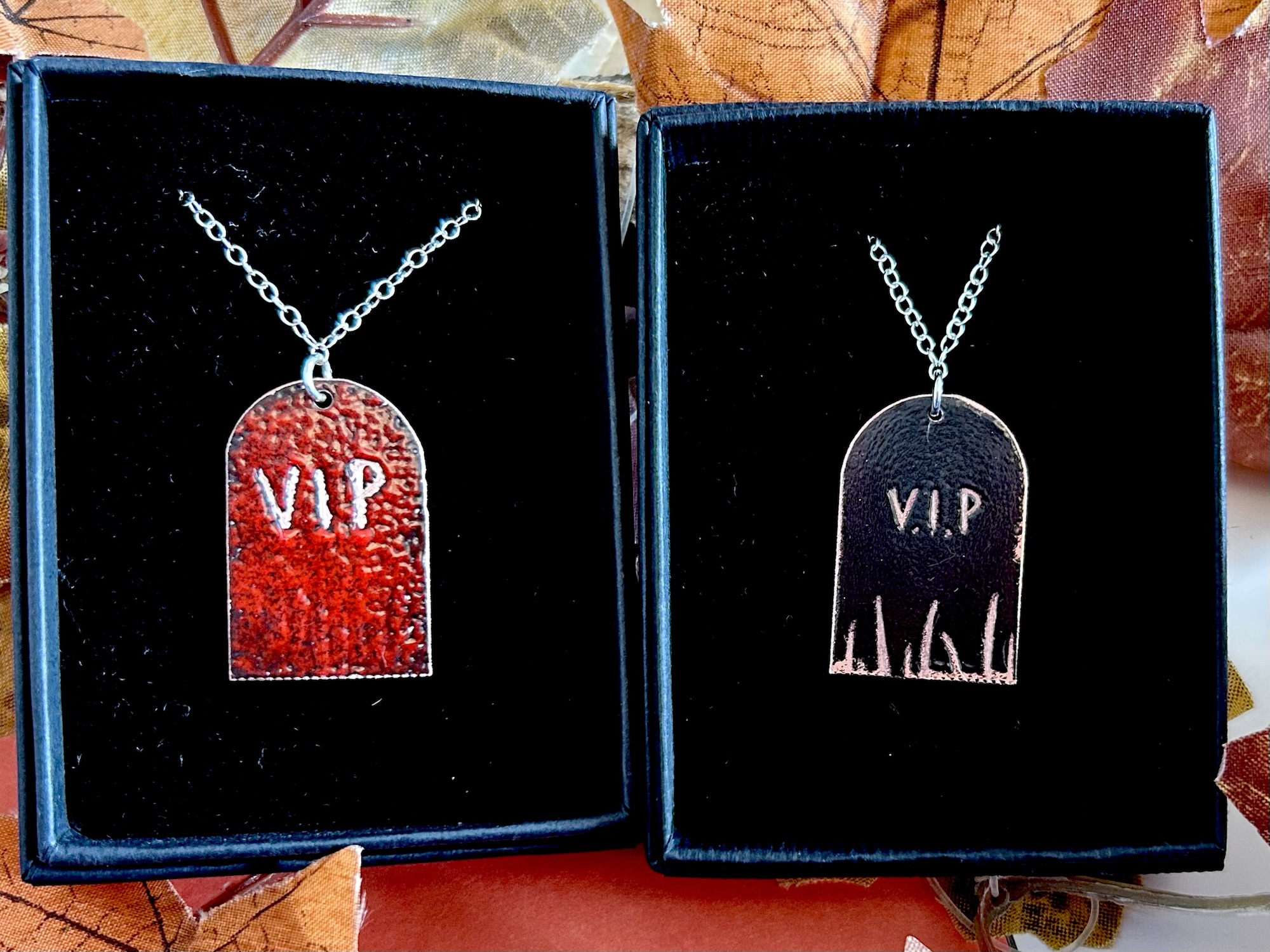 Exclusive one of a kind enamel Halloween themed Pendant with R.I.P on tombstone